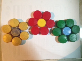 With great care not to burn we use the silicone gun, we paste the remaining caps in what represents the center of the flower.