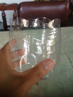 We cut a plastic bottle in half.