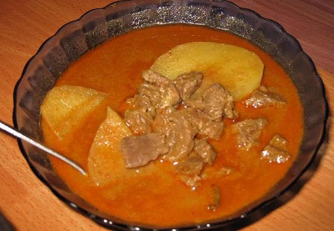 Pour the iodized salt and brown sugar and stir again until the coconut milk is boiling. After boiling, insert the thick coconut milk and stir again until cooked and the meat gulainya tender. Taste first and add the salt and white sugar if necessary and then lift.
