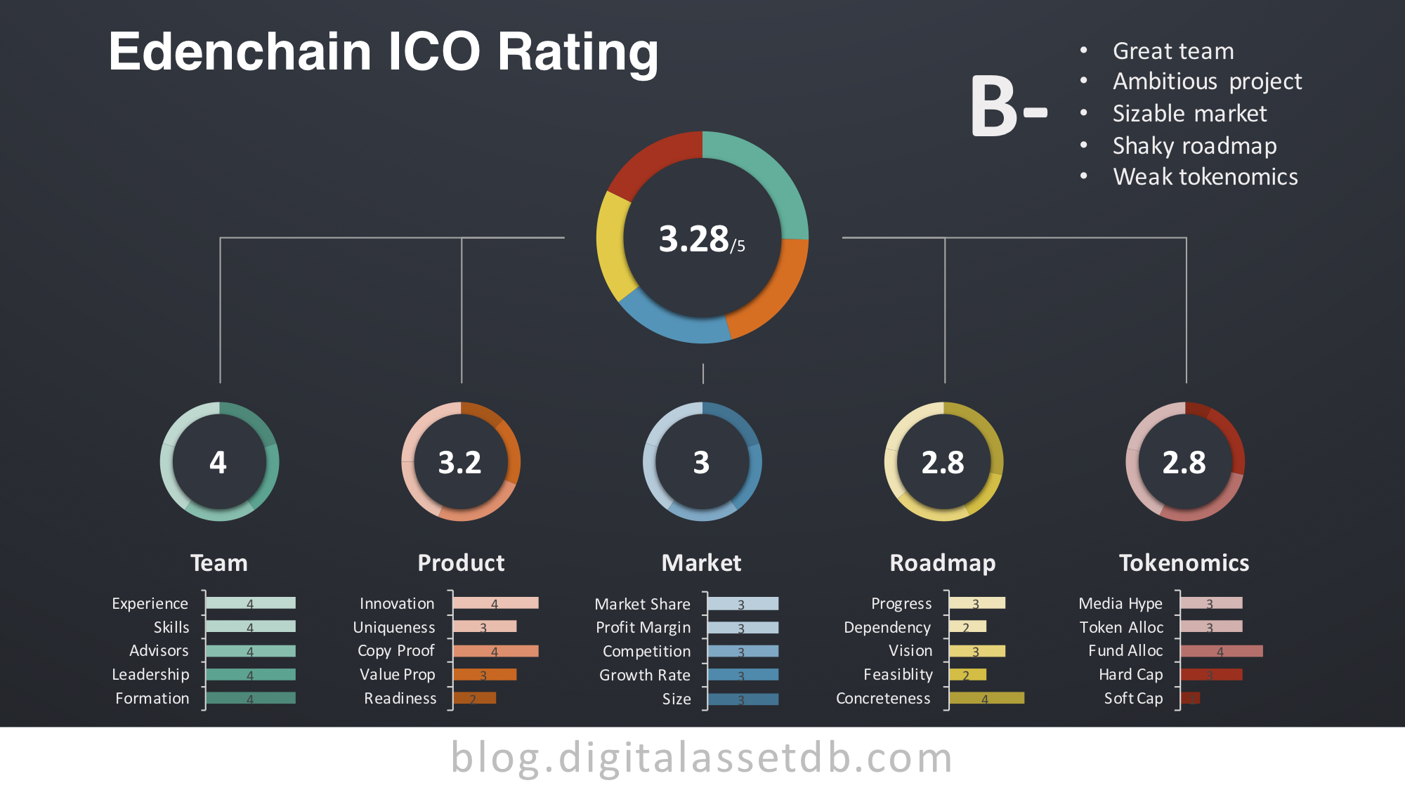 There are some imperfections of the project, those need for a risk assessment. The issue of direct communication with customers and ways of servicing themis one of sick sides. It is important, because the platform opens opportunities to the client, puts on it and responsibility and requires compliance with all security measures. In addition, as an economic platform, the Eden has no goals or plans for future income and forecasts its economic indicators of revenues and expenditures. Perhaps, this is in cause of great perspectives, but there are lacks of reasonable specifics.