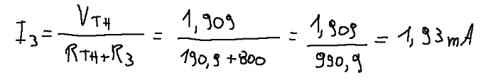 A questo punto possiamo calcolare la corrente in R3 eseguendo il seguente calcolo