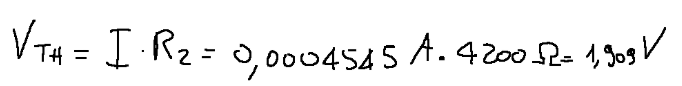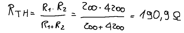 Si spegne la sorgente E creando un cortocircuito e vista da A-A avremo R1 e R2 in parallelo. Per ciò avremo che RTH sarà uguale al seguente valore.