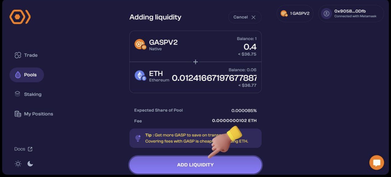 Gasp leverages the EigenLayer, making it the first cross-chain DEX with Ethereum restaked ETH security. This means Gasp is secured by Ethereum’s cryptoeconomic strength, without centralized intermediaries or added risks. It’s all about providing L1-grade security—a crucial step forward for secure DeFi. Learn more about EigenLayer’s role in Gasp’s network here