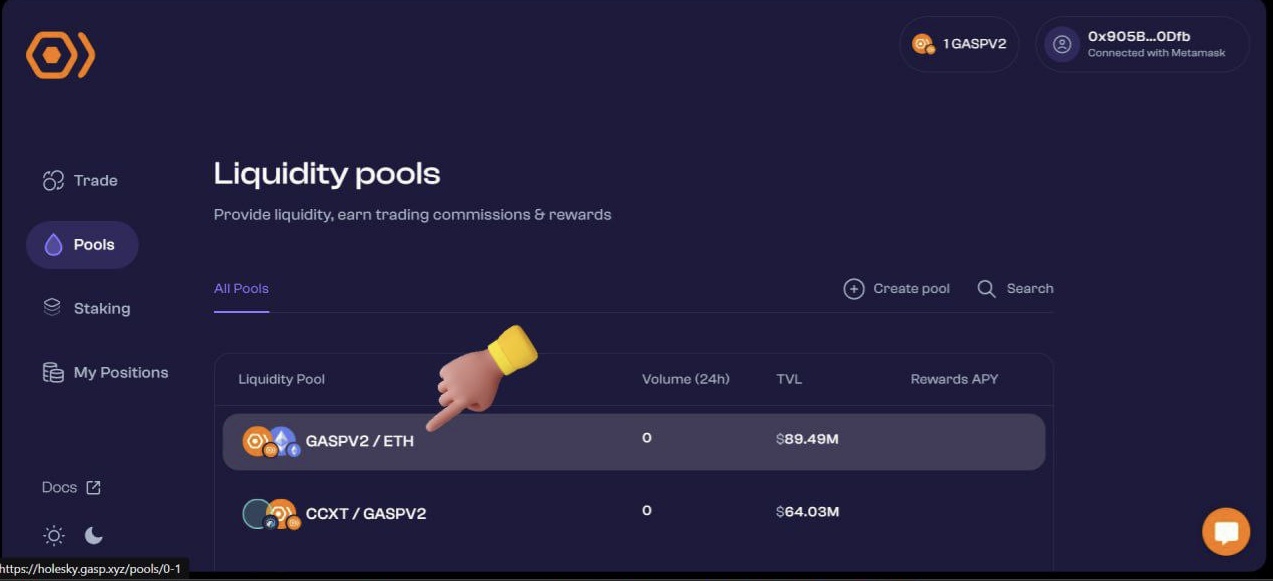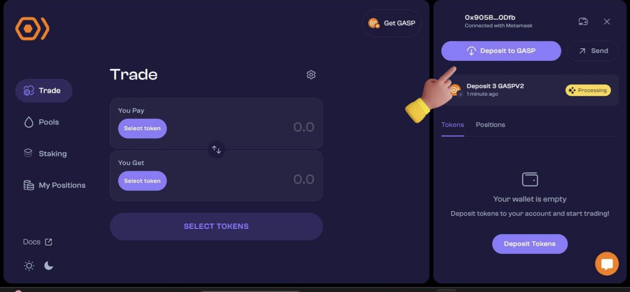 - Visit https://holesky.gasp.xyz/ and deposit Gasp