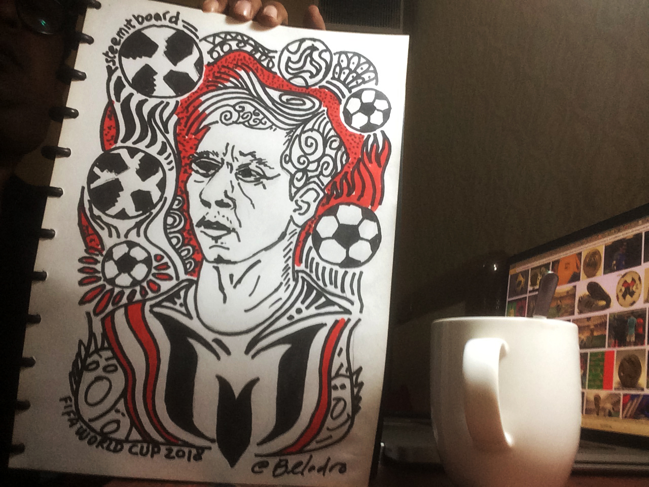 Mengapa saya membuat doodle art tentang Messi? Karena saya juga penggemar beratnya dan saya pun termasuk ke dalam orang-orang yang salah menebak hasil pertandingan Argentina melawan Islandia dalam kontes yang diadakan oleh @steemitboard. Dan juga hari ini Argentina akan kembali bertanding melawan Kroasia, doodle ini adalah doa saya untuk Messi agar mencetak banyak gol dalam laga keduanya nanti.