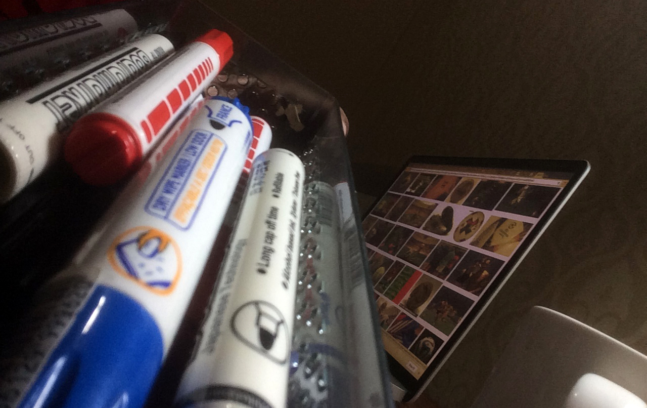 Ternyata melatih kembali jari menggunakan pensil dan spidol lumayan mengasyikkan. Saya mulai menyukainya. Dan semesta sepertinya mendukung, saya menemukan tumpukan spidol dalam kotak yang lama tak saya buka.