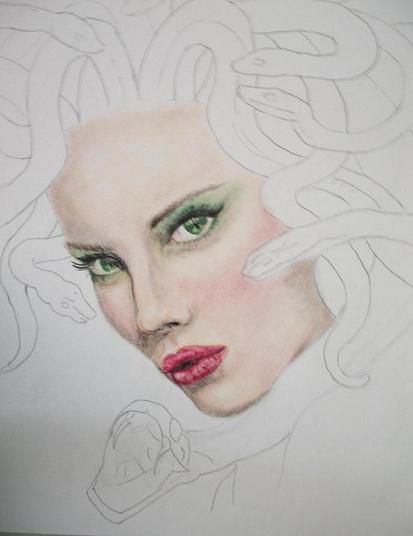 Today I share the portrait of a woman who was once extremely beautiful and who, due to life in her mythology, became a monster. that woman was, Medusa, which in ancient Greek means guardian or protector, was a chthonic female monster, with the ability to turn into stone those who dared to look her in the eyes.