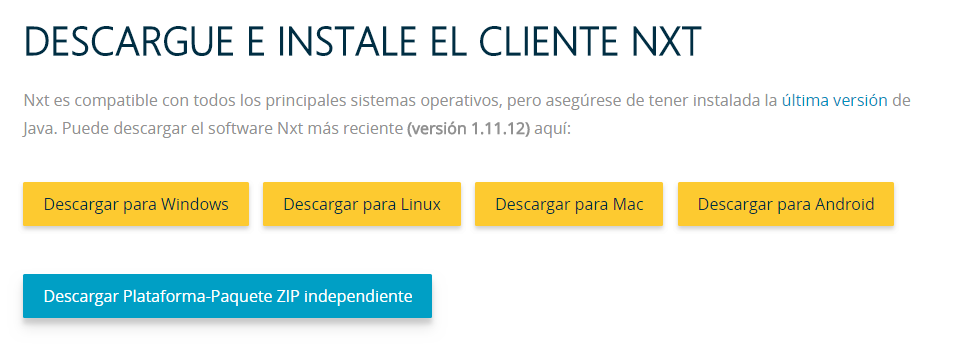 Para nuestra agradable sorpresa la plataforma NXT se presenta de manera sencilla, amigable y clara, al igual que las explicaciones detallas en cada una de las 5 pestañas principales, como se oberva en la siguiente imagen: