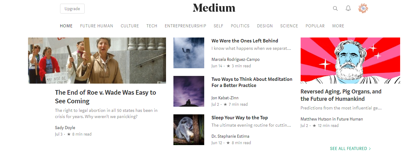 Sin duda alguna su diseño sencillo y minimalista hace de Medium una herramienta bastante accesible y amigable, incluso se puede crear tu usuario usando tu cuenta de Twitter, Facebook o Gmail.