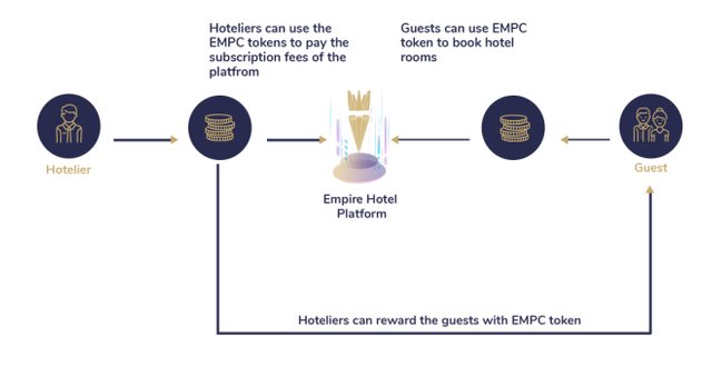 Hoteliers can utilize the EMPC token to pay the membership expense of the platform as characterized in the plan of action area. Hoteliers can compensate the visitors with EMPC token so visitors can utilize their preferred token to profit additional administrations from the hotel.
