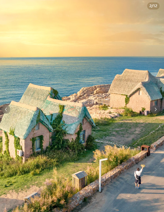A thatched cottage by the seaside 🛖, It's like a fairy tale world, the sea in Weihai is really blue, so it's perfect for summer.