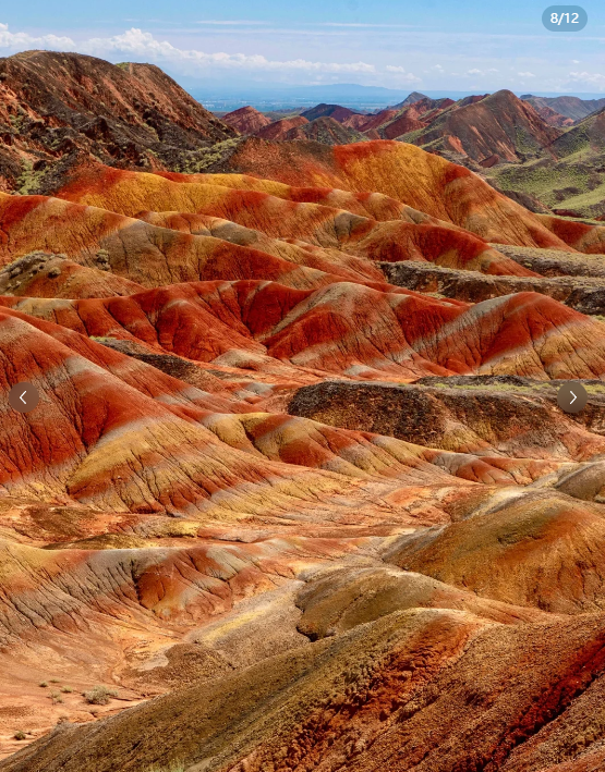 The stunning Danxia landform, under clear sky, the mountains seem to be burning with flames. It is recommended to take a Qinghai Ring Road tour during the summer and add Zhangye to it.