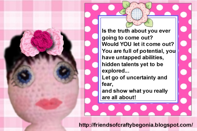 Would you allow the truth about you to come out? Are you afraid to go out on a limb and try something new or follow your hidden dreams? Don't allow yourself to wind up old, sitting on a park bench full of regrets about what you could have done and never did because you were afraid of failure or of looking stupid to people you knew and now it's too late to even try. Go for it!