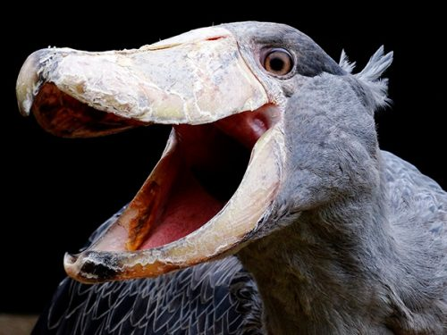 The peakshoe is characterized by being a species of pelecaniform, gray in color. It is a bird that has a prehistoric appearance and is named for its large beak, much like a shoe.