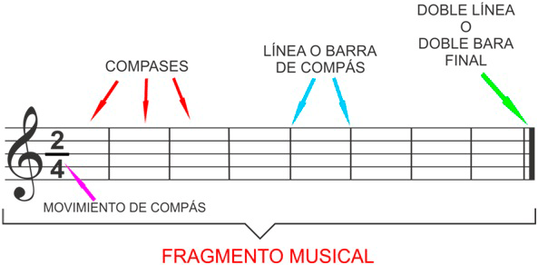 Como vemos, el compás es una celda donde encerramos los sonidos y tiempos de una obra, que esta limitada por lineas divisoras. Al principio de cada partitura se encuentra una fracción, que nos indica con su Numerador, cuantos pulsos hay en el compás y su denominador, que figura musical representa un pulso o una unidad de tiempo.