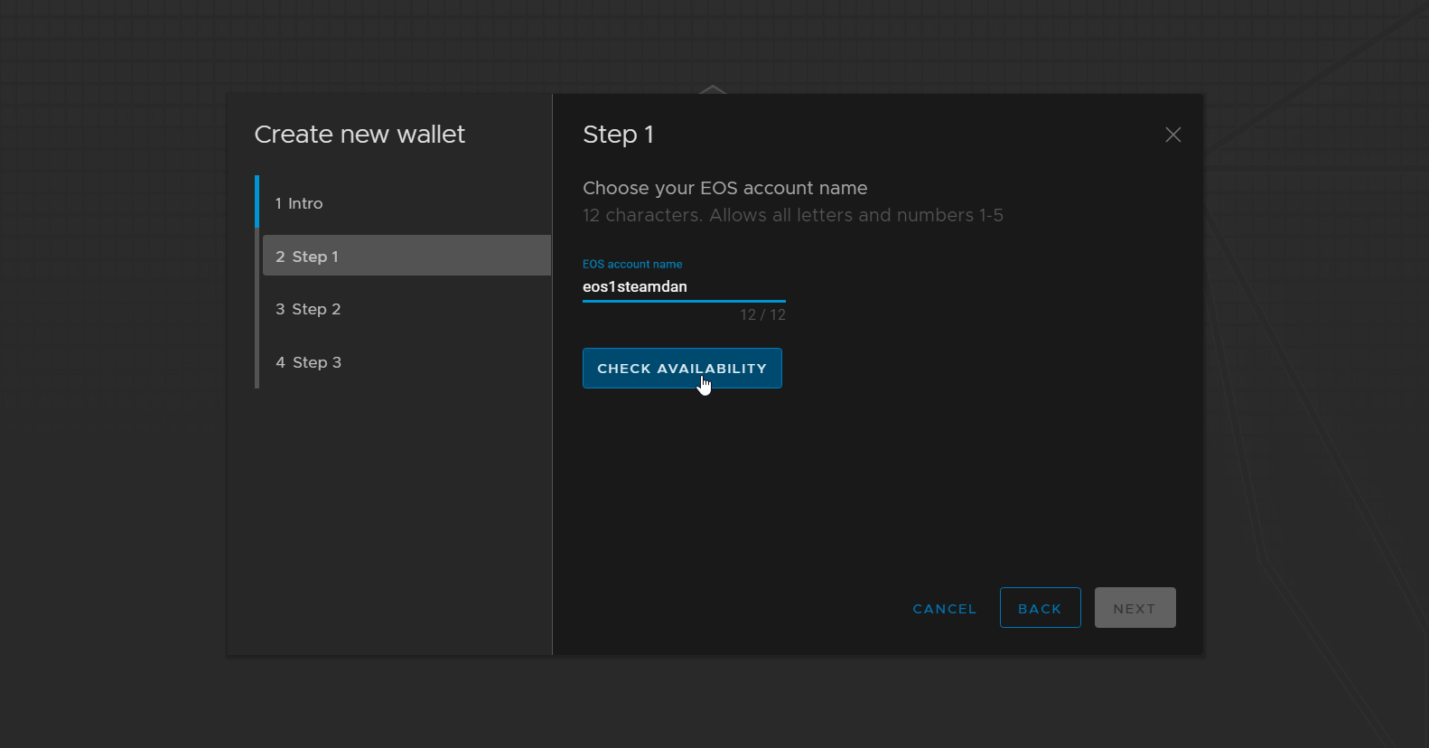 - Elegir el nombre de cuenta. El requerimiento es chequear la disponibilidad del nombre de obligatoriamente 12 caracteres de números del 1-5 y/o letras que deseas. En este caso @steamdan va a solicitar su creación de cuenta con el nombre de