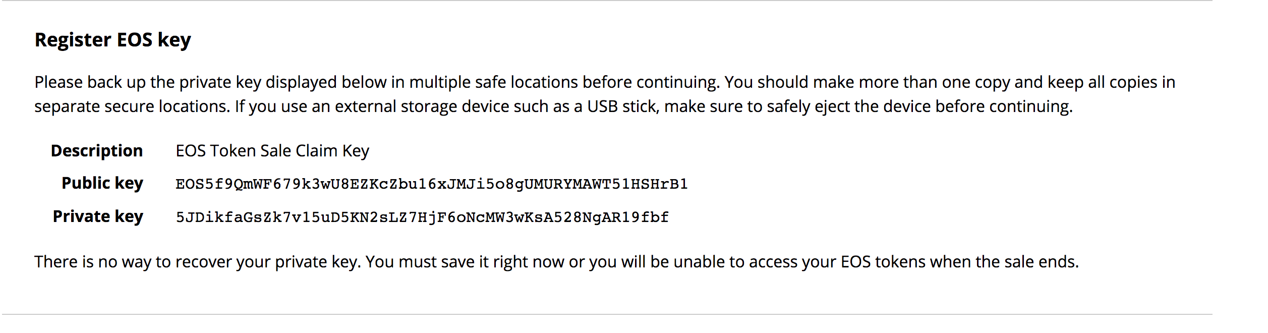 Step 1 - Generate a public / private EOS keypair (like the sample above)