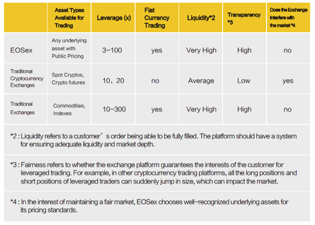 • 100x Leverage Available: EOSex keeps up huge subsidizing stores to give profound edge support, in contrast to other trades that offer contracts for the future or nonstop future contracts, however which regularly keep running into liquidity deficiencies. With EOSex, traders can without much of a stretch go long or short from any cost point.