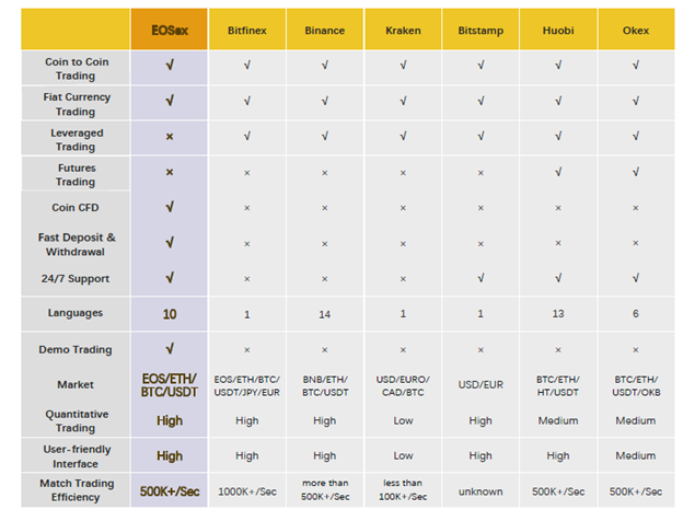 EOSex means EOS and Exchange. The reason EOS is a used as a prefix in our brand name is for the singular reason that we are faithful in demonstrating our chief responsibility to bolster the EOS platform, to enable high quality delivery of dApps, and general advancement of an agreeable and communitarian ecosystem. At the initiation of EOS in 2017, the founder of EOSex was among those who accepted the changes presented by EOS platform. Therefore, with the experience gained in working on some successful project for EOS, he decided to put a team together to further render services in support of this great platform; EOS, followed by the creation of eosex.com website for trading.
