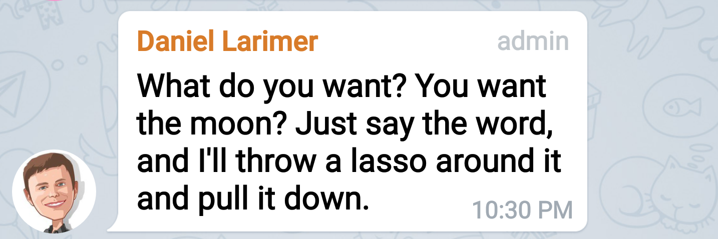 EOS Getting Ready to Moon - Messages From Dan In EOS Telegram Chat
