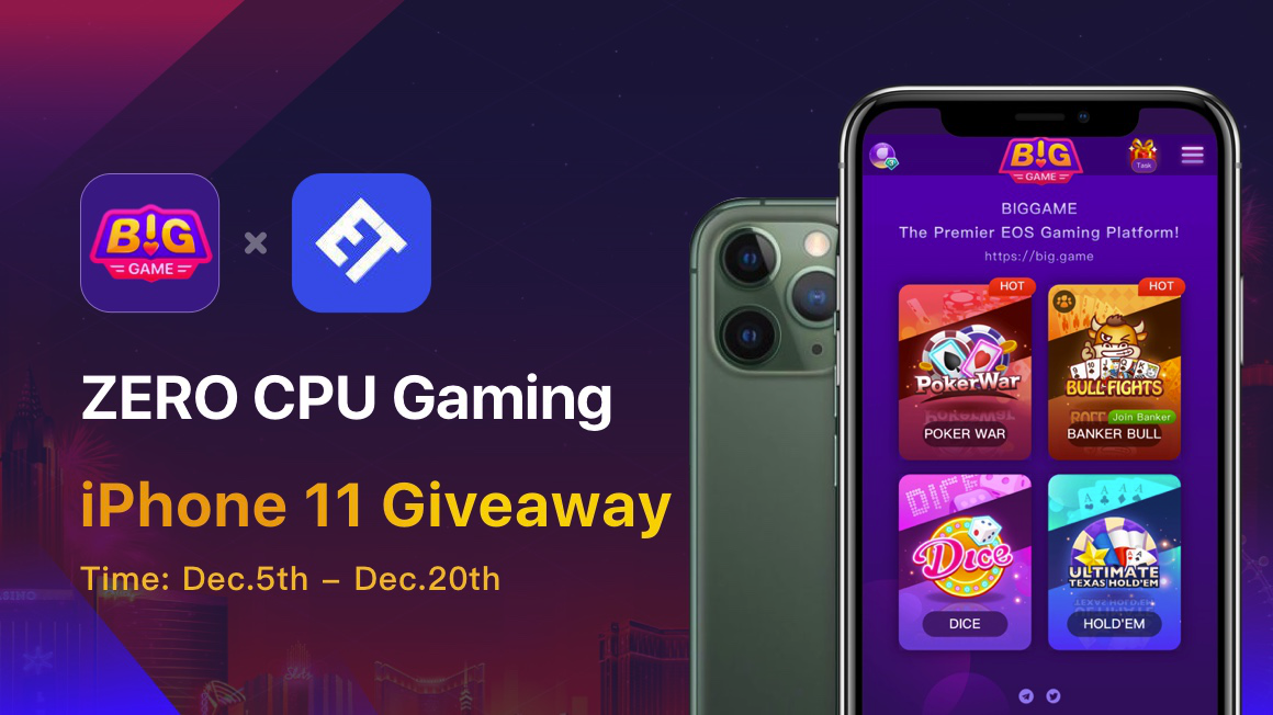 ET wallet has supported ZERO CPU to play BigGame! To celebrate this, uncapped iPhone 11 Pro Max are giving away based on your wager!