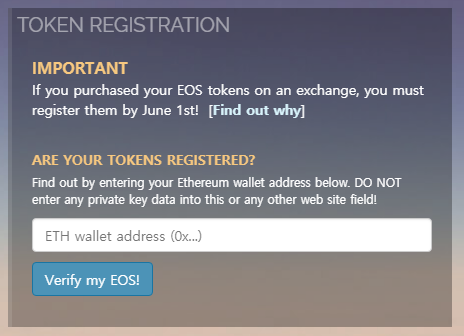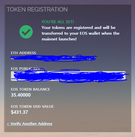 On the EOS countdown homepage, you can confirm that your wallet is properly registered.