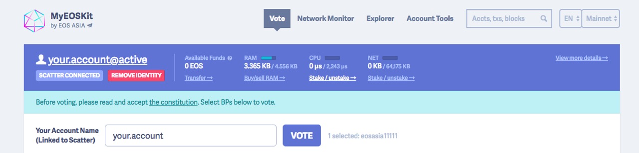 Today EOS Asia is introducing two significant functions with MyEOSKit. We've been working for two months to provide the best service available and improving upon what we built. Today, we feel like we've reached our first goal with MyEOSKit and achieved what we set out to do, a complete website for everything EOS and a replacement for MyEtherWallet in the EOS world.