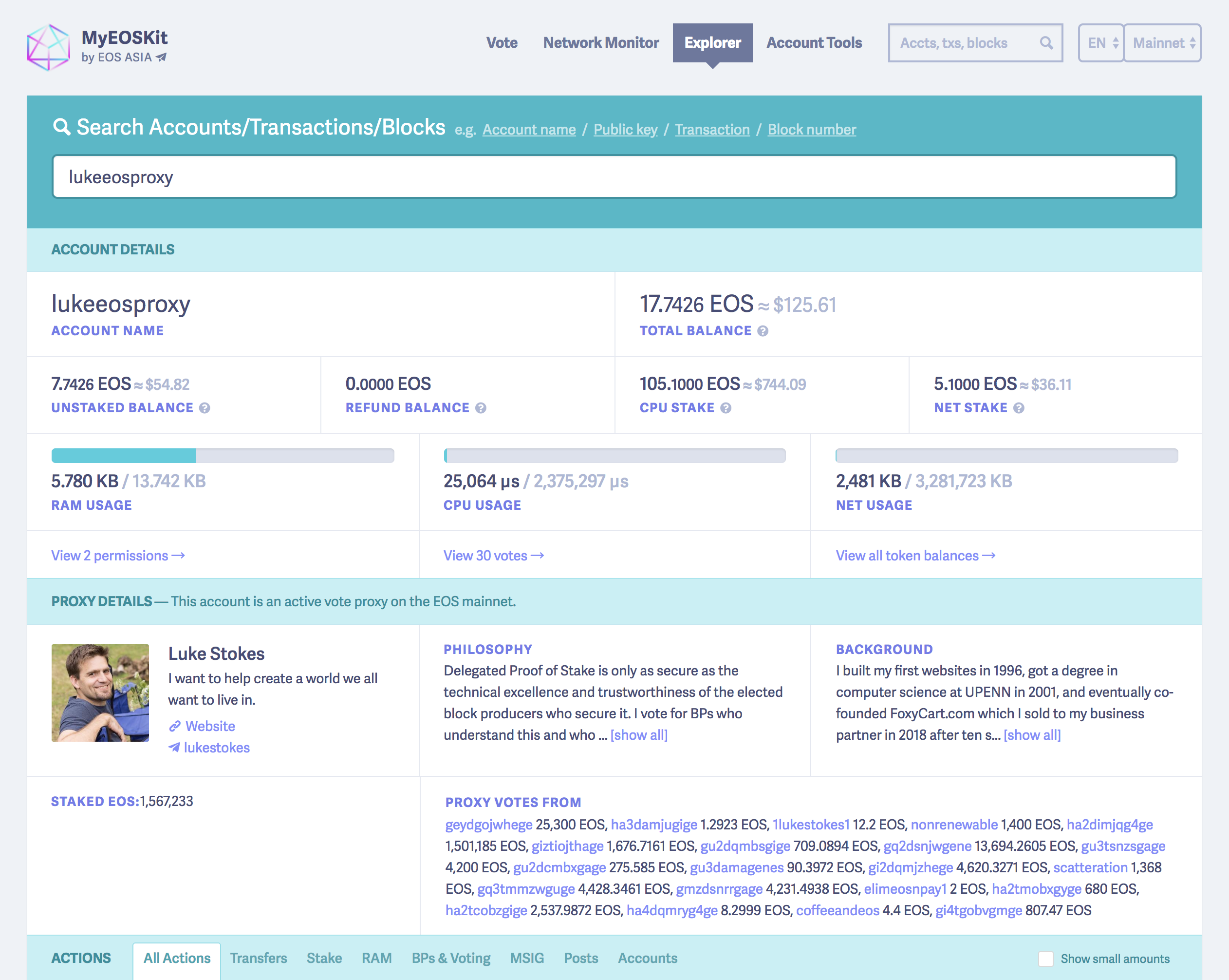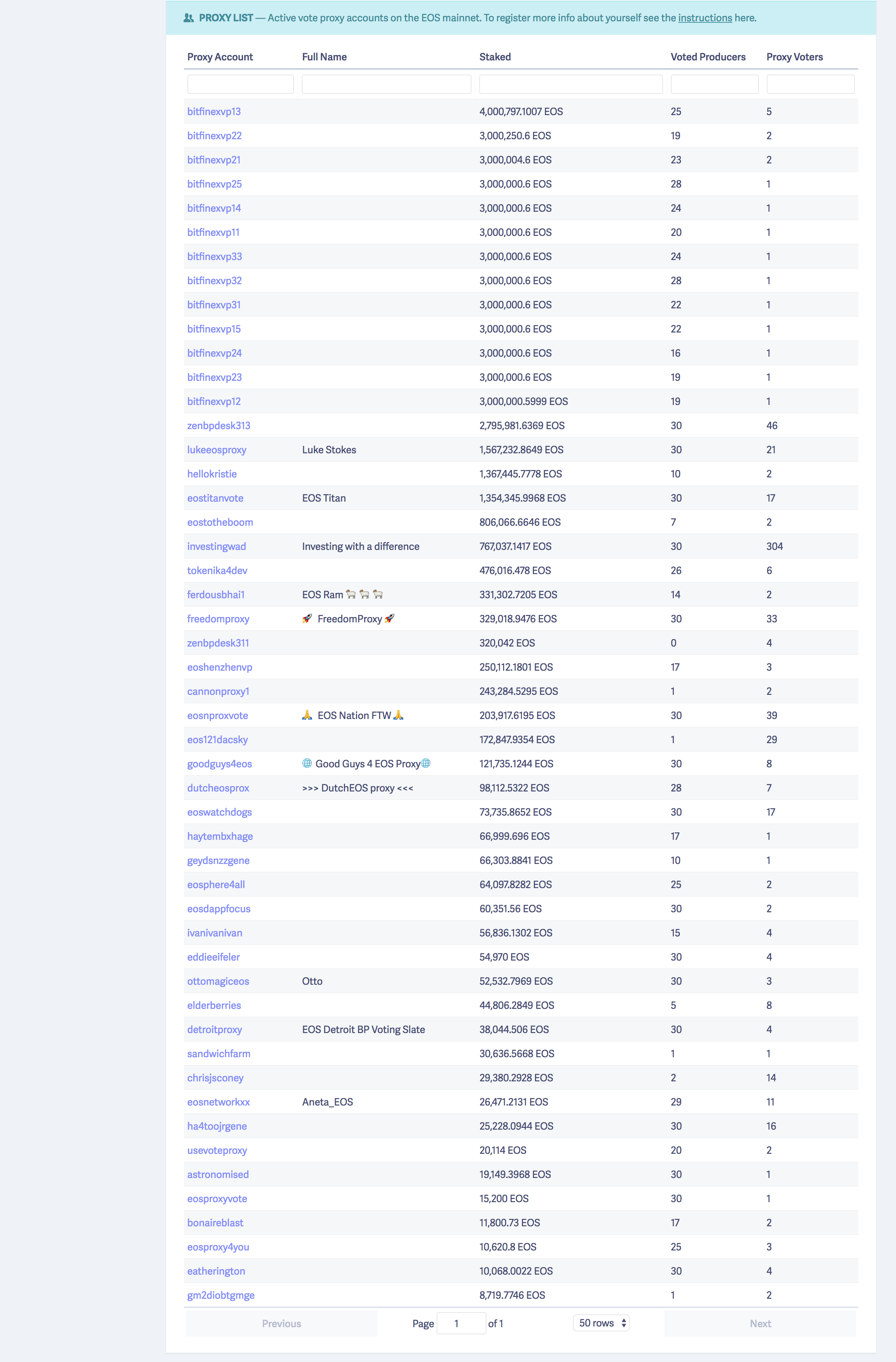 You are now able to explore all the proxies available in the EOS network and inspect their philosophy, their background, the total of EOS staked, and much more.