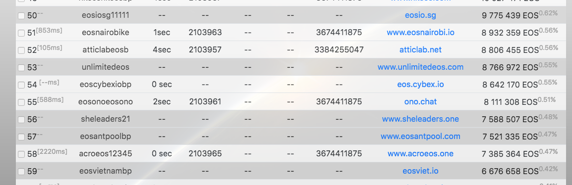 If you head over to the EOS network monitor, you’ll notice some of the BPs have grey bars across their background.