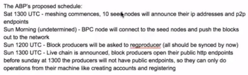But before the staking can even begin the mainnet needs to be launched first. The launch agenda is now being updated by ABP (Appointed Block Producer). ABP was selected randomly to boot up and run the network until the 15% quorum is reached. While ABP's identity is a secret there's a live communication with all the other BPCs and they're working on the agenda together.