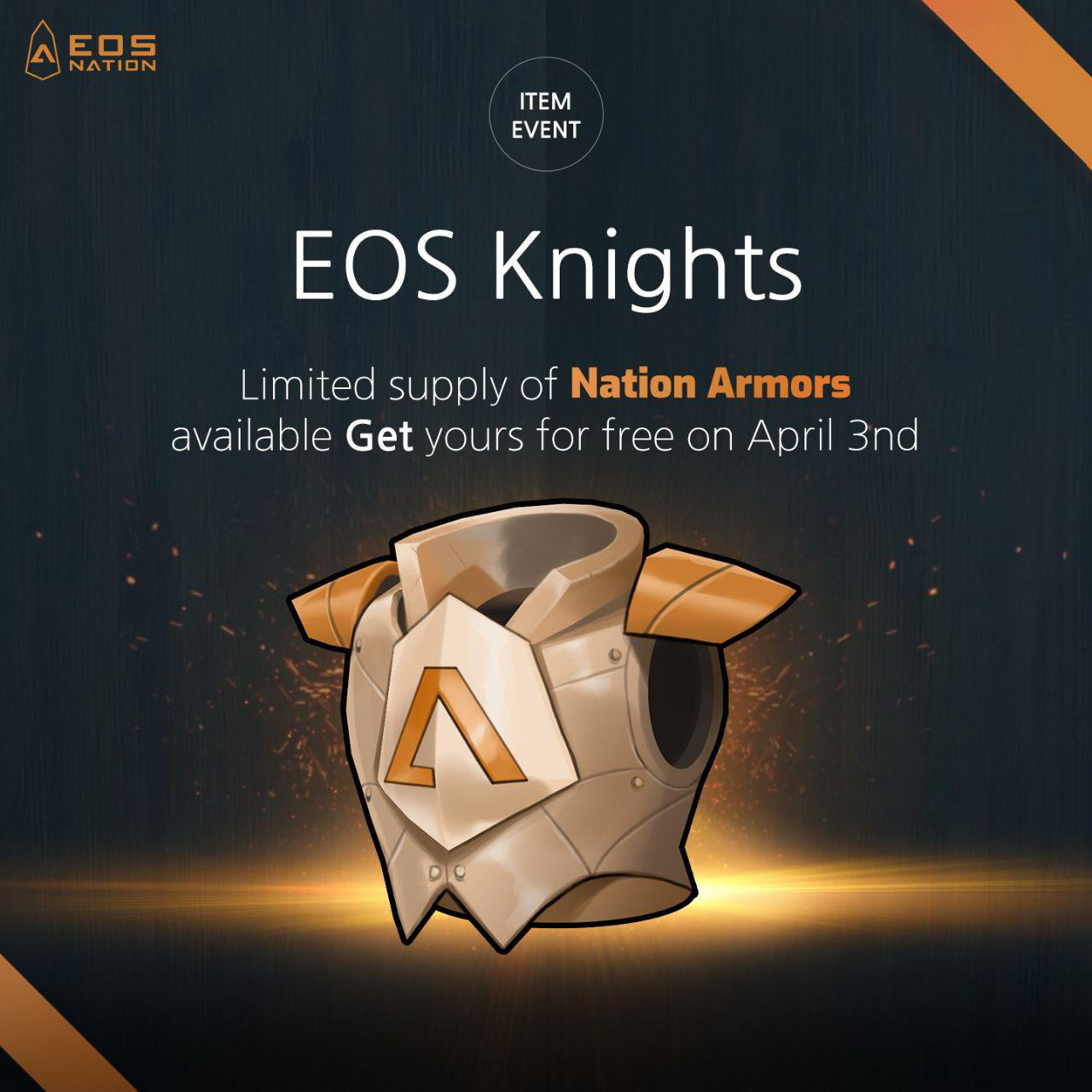 EOS Knights EVENT together with EOS Nation RIGHT NOW !tsto (47)in #eos • 7 years ago (edited)Come and claim your own Nation's Armor in EOS Knights !! Claim your Nation's Armor HERE Facebook | Steemit | Twitter | Telegram | Linkedin | Everipedia #eosknights #eosnation #games