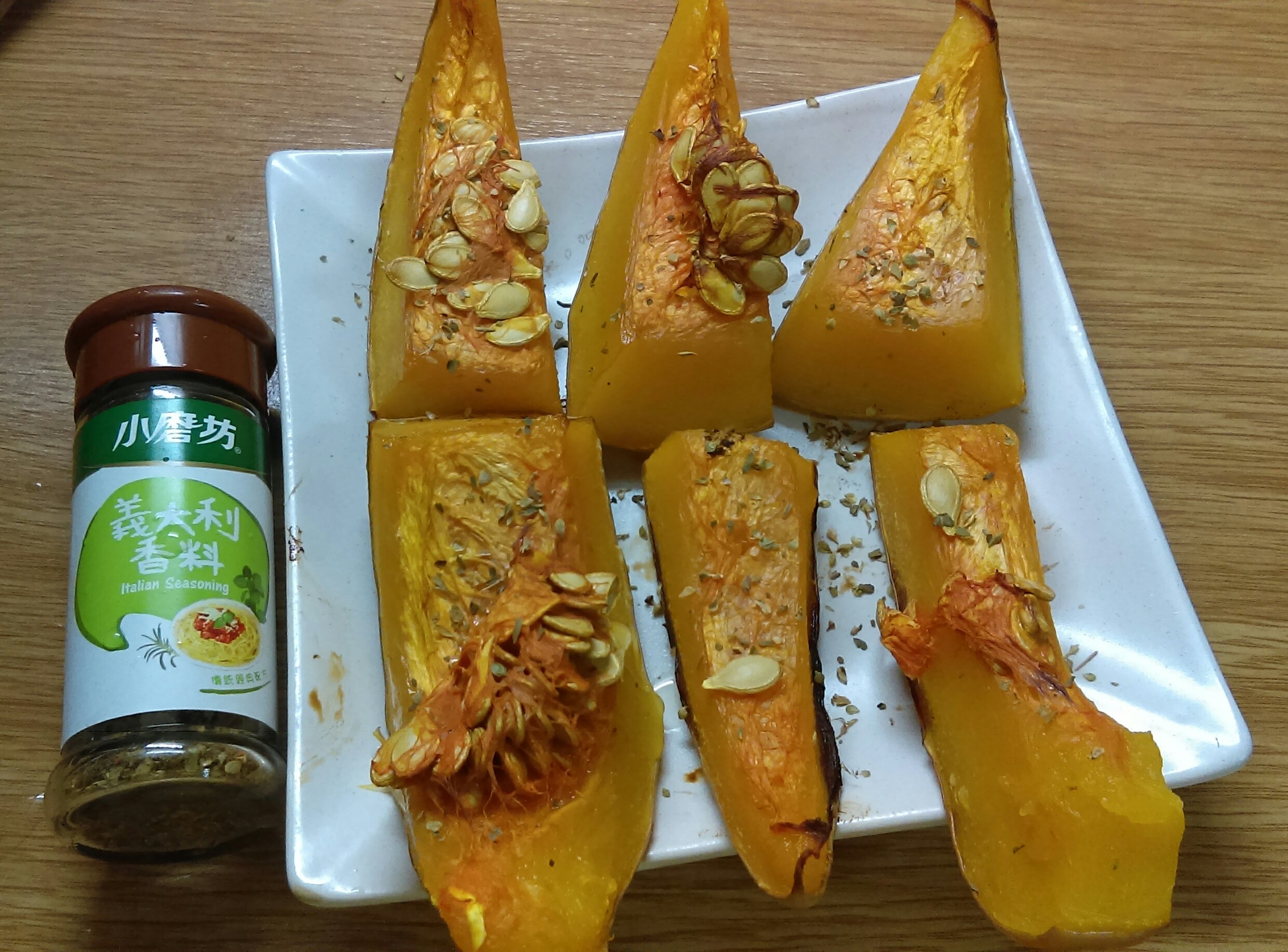 - cuci bersih labu kuning, jangan dikupas kulitnya, potong menurut selera, kukus sebentar saja, setengah matang lalu angkat, dan panggang dalam oven, suhu panas 200 watt, selama 30 menit, tambahkan lada spageti diatasnya, selain cantik juga sangat lezat untuk hidangan makan malam maupun makan siang.