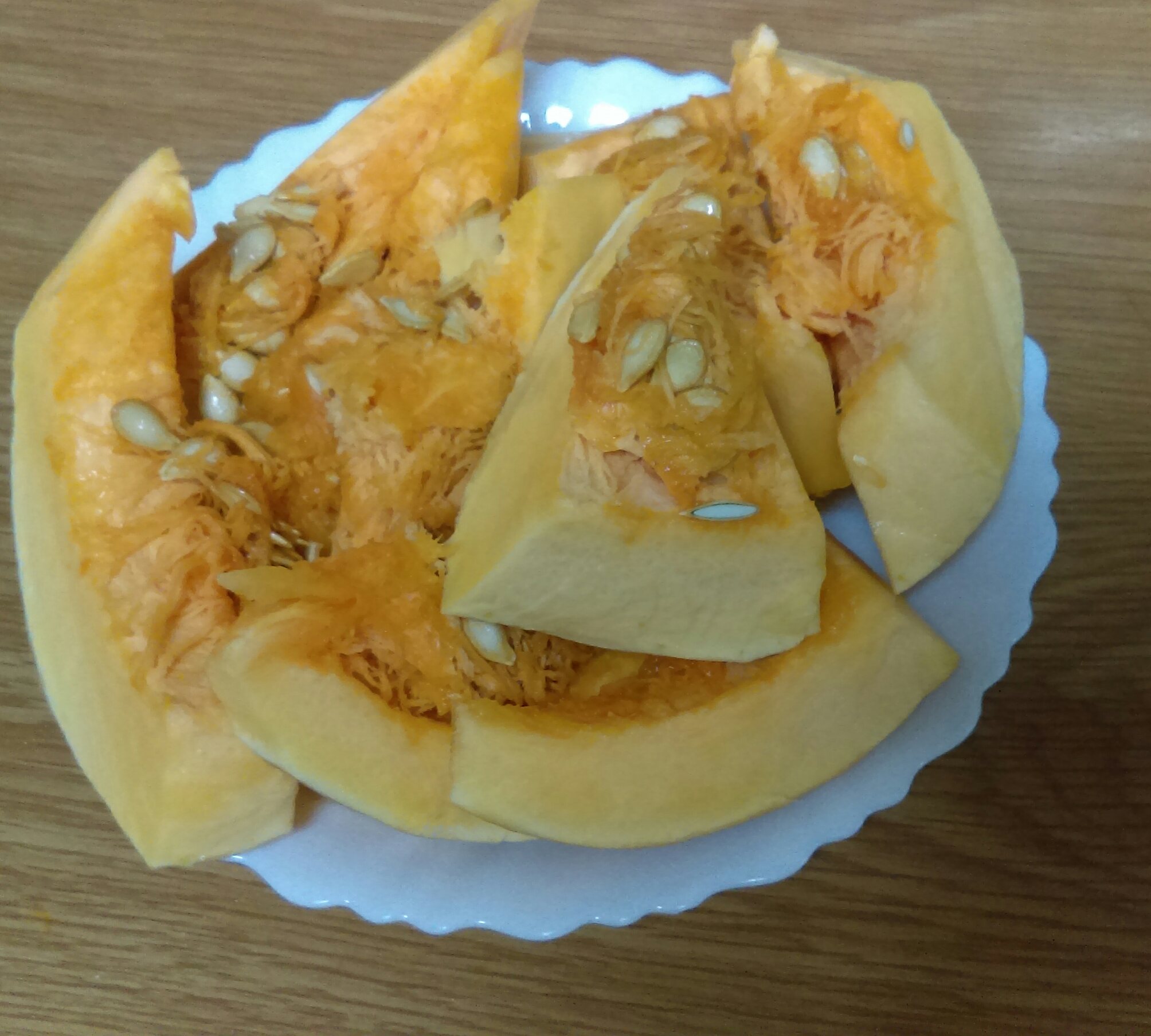 - labu kuning, jangan dikupas, dicuci bersih saja