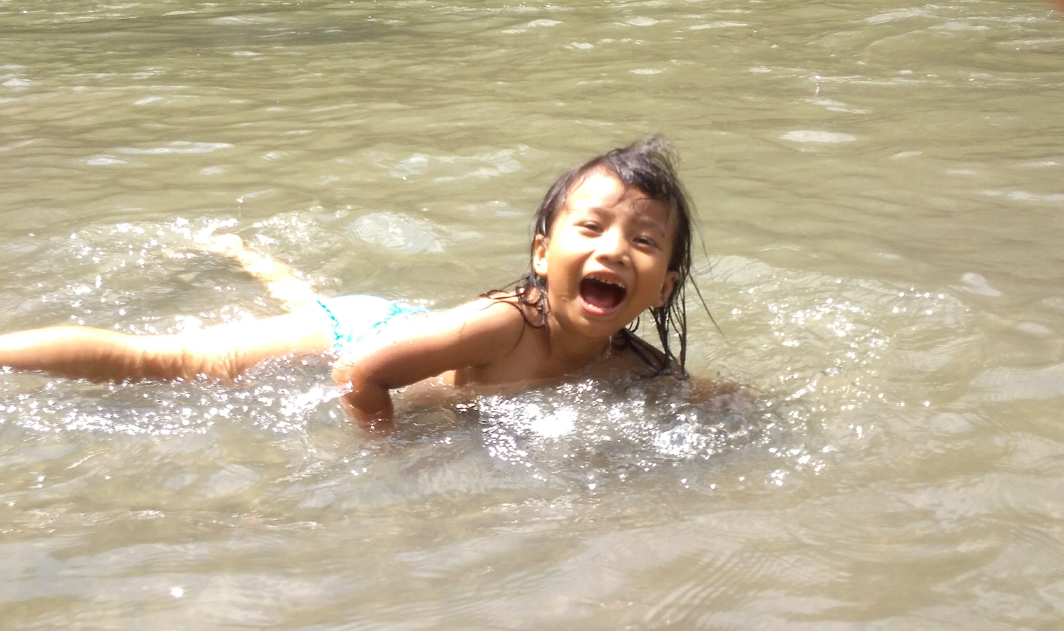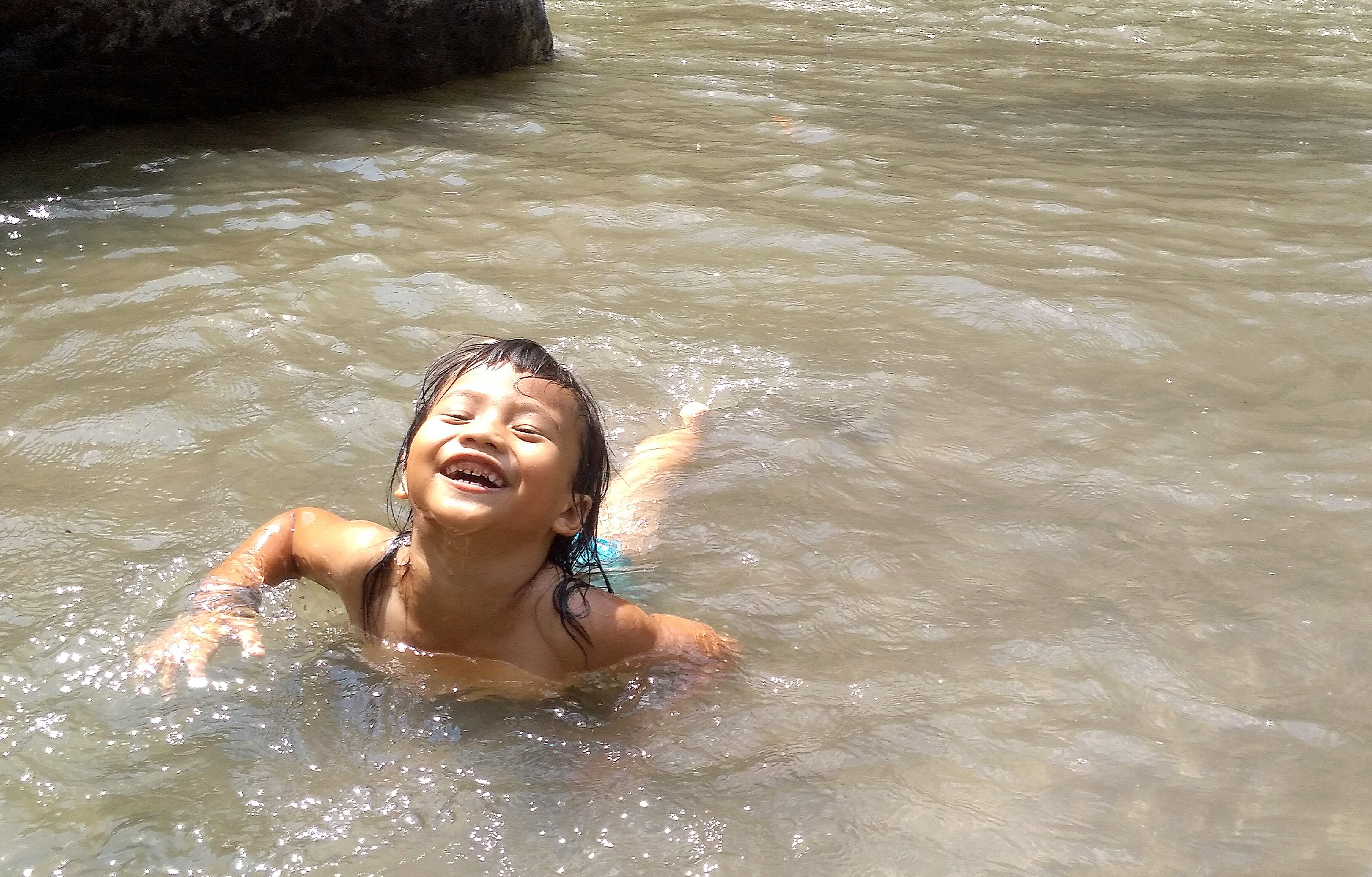On this holiday I share with all of us some photos of the happiness shown by my little daughter while playing water in a river. With the hope that what I share is able to make us even more excited in the activity in this super cool media.