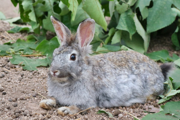 The rabbit sits on the ground under the tree and relaxes. Suddenly a fox appears and eats the rabbit.