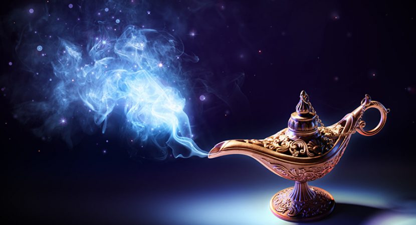 Two employees and the manager of a company go out to lunch and find an old magical lamp in the street.