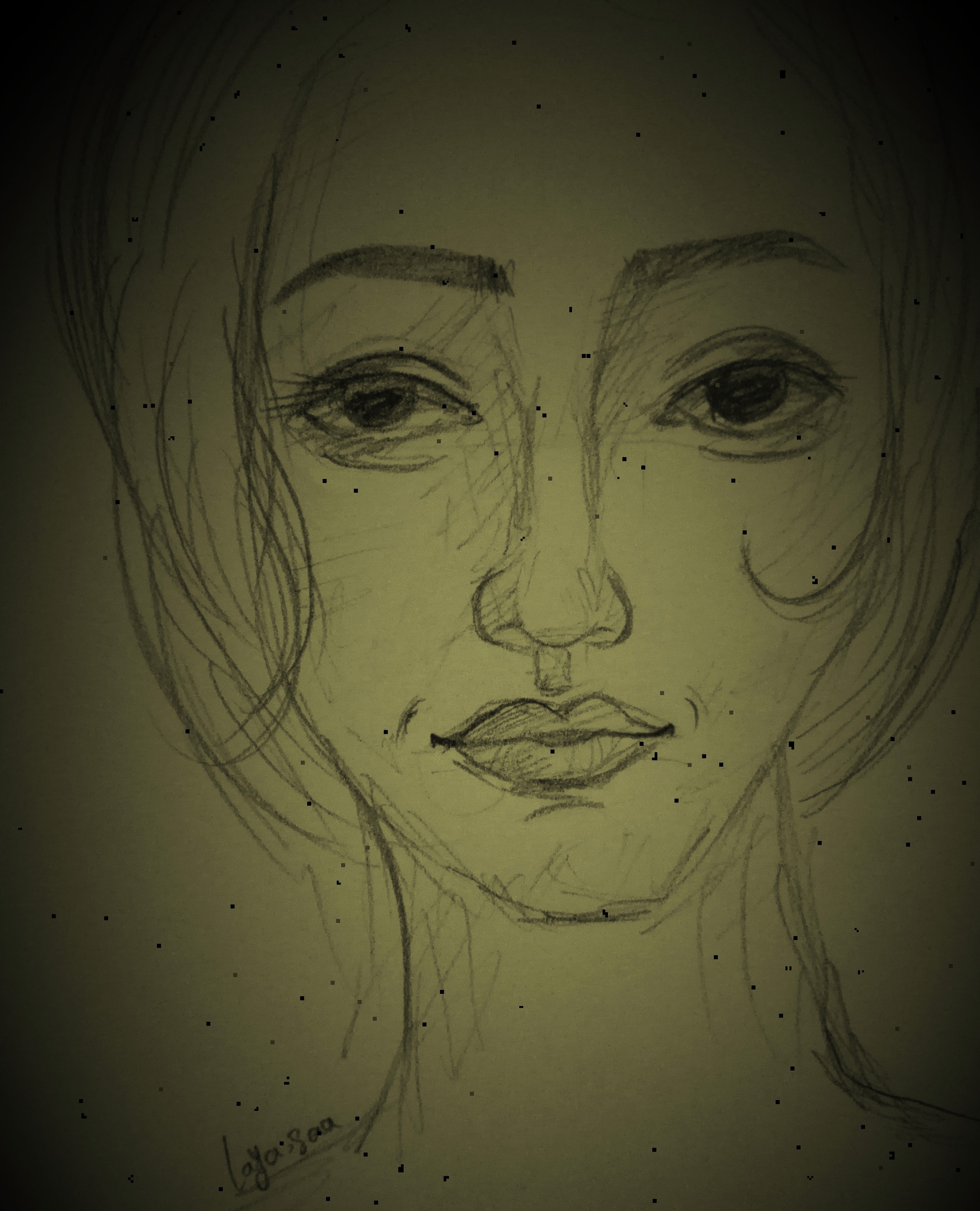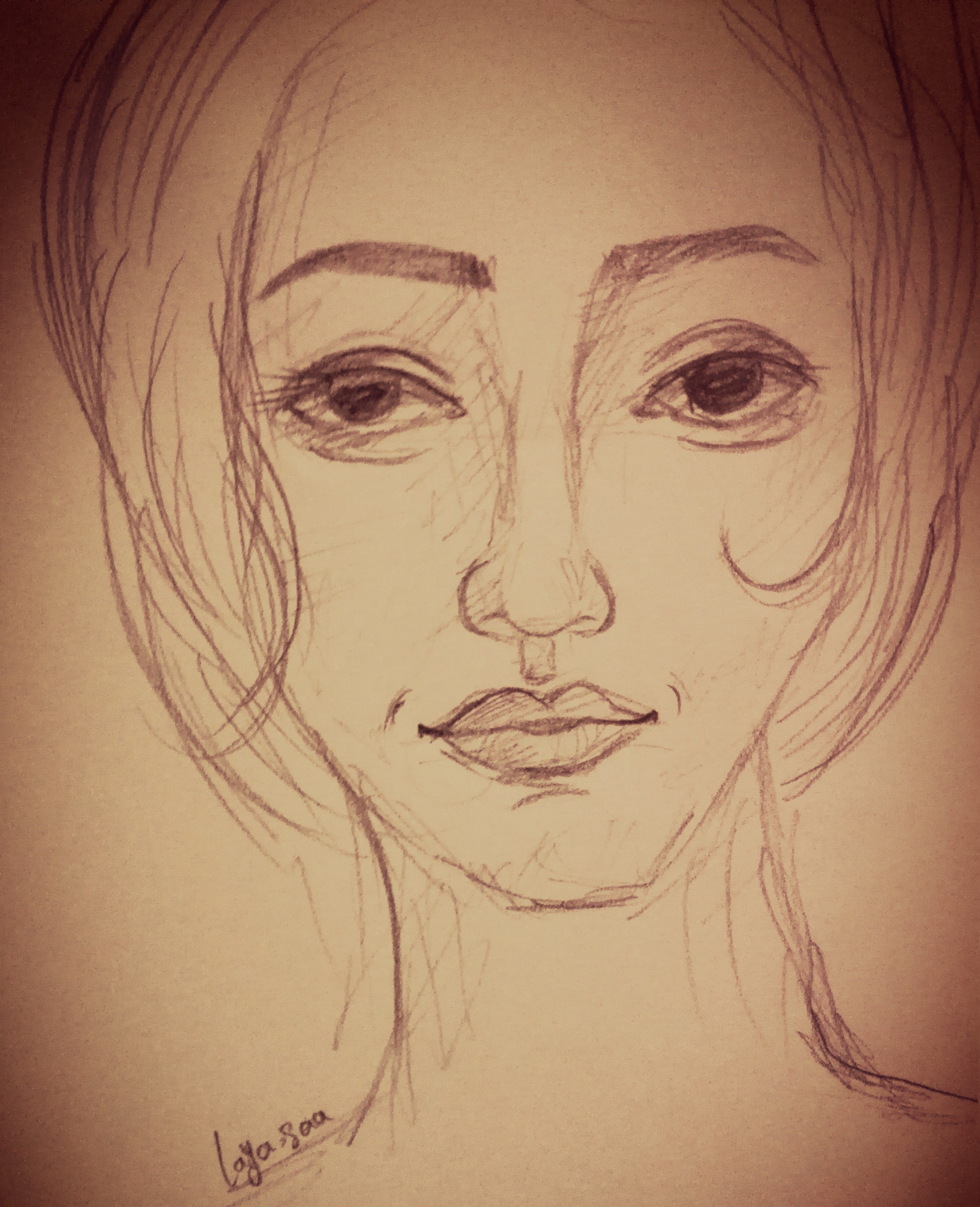 i draw this lady with pencils , and i wanted to draw someone with a normal face , but i think all of use one by one are beautiful ,
