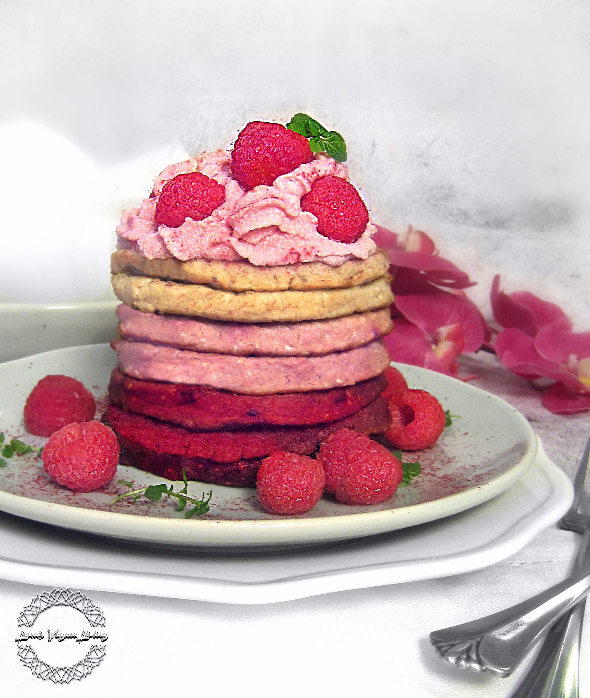 Oatmeal Pancakes with Red Beet Powder & Pink Cream