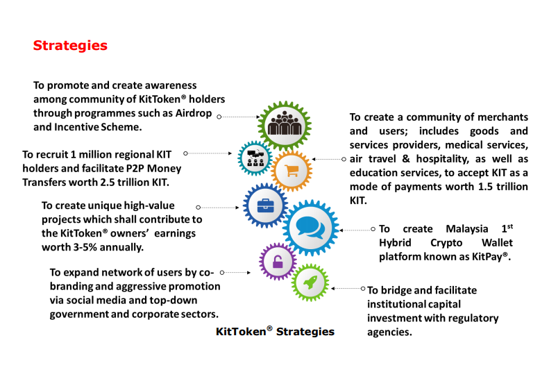 It is at the heart of our policy to make KitToken known to the world through AirTrops and the Bonus Compensation Program. Hire 1 million KitToken (KIT) holders to reduce peer-to-peer transactions. Build an advanced project that generates 3-5% per year for KitToken holders. Increase awareness of KitToken through social media publicity and offline evangelism with access to corporate and other sectors of government. Create stakeholder groups in goods and services to accept KIT as a payment atmosphere. KitPay is proposed as Malaysia's first hybrid cryptocurrency purse. KitToken institutionalizes institutional investments and links them with regulators.