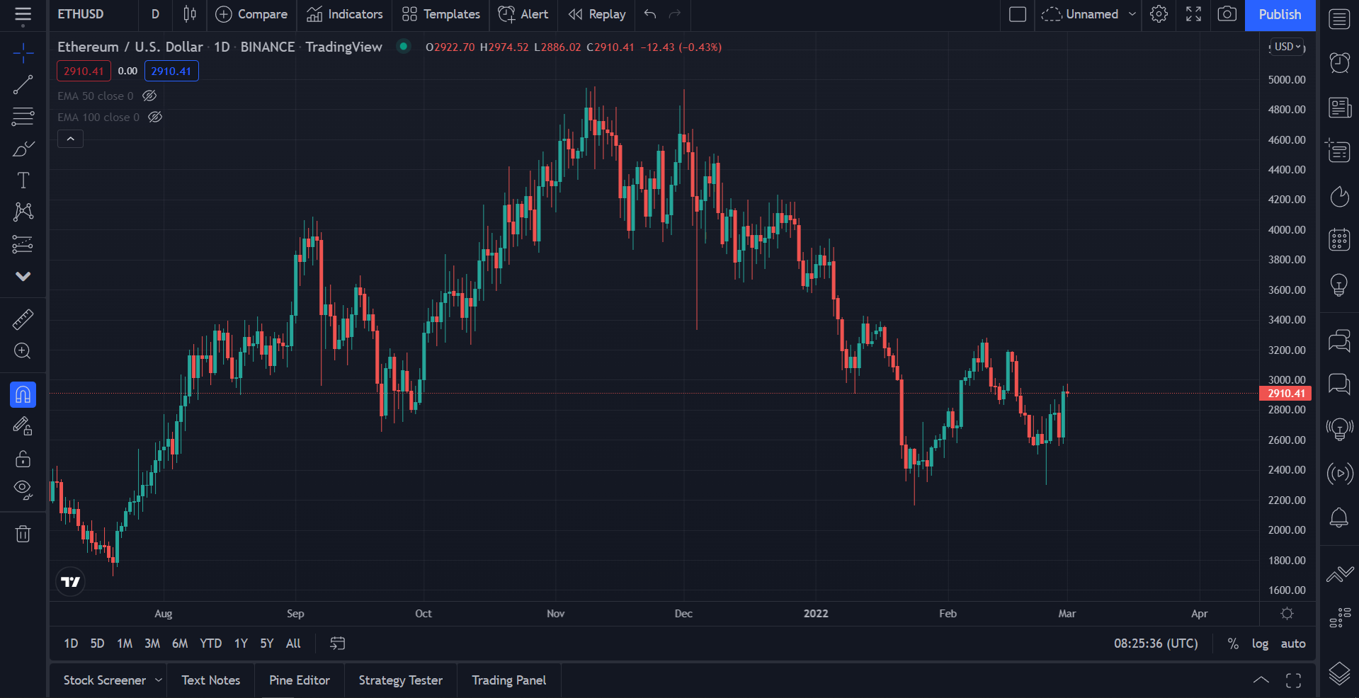 ETH current price on March 1, 2022erev (60)in #eth • 4 years ago The price of ETH on March 1, 2022 was at the level of $2910.41 #cryptocurrency #currentprice #tradingview