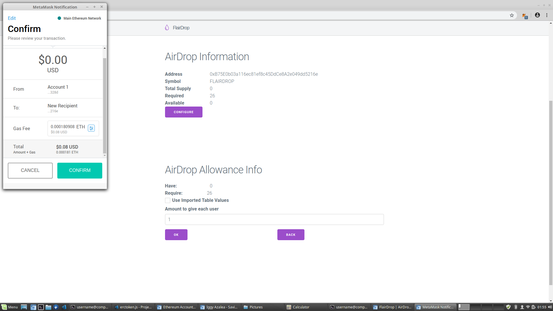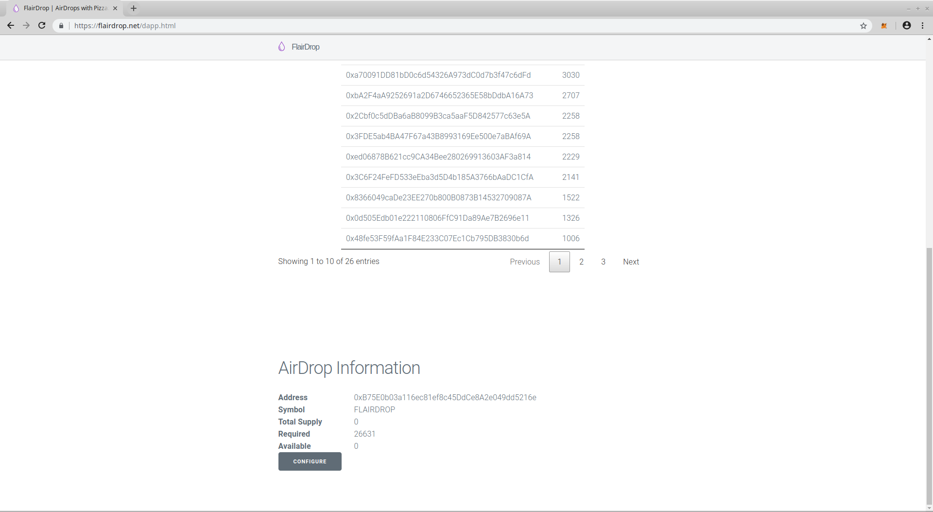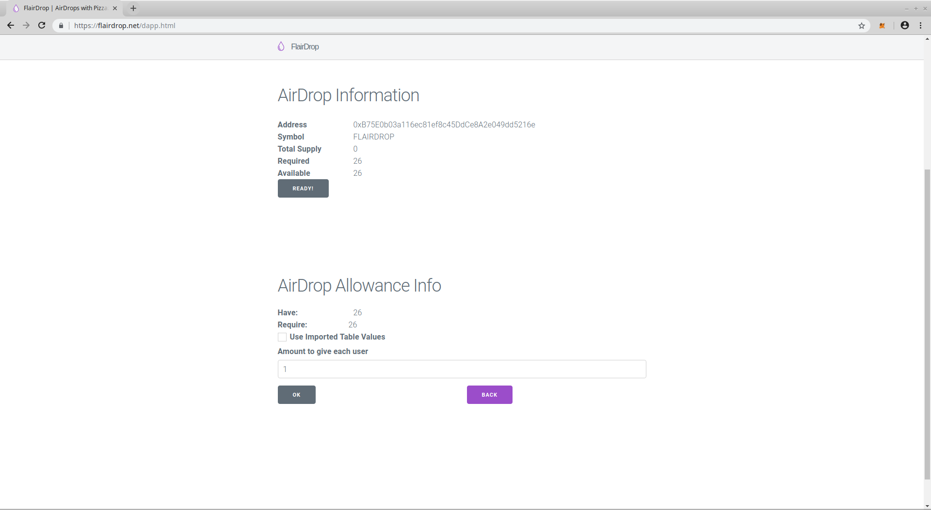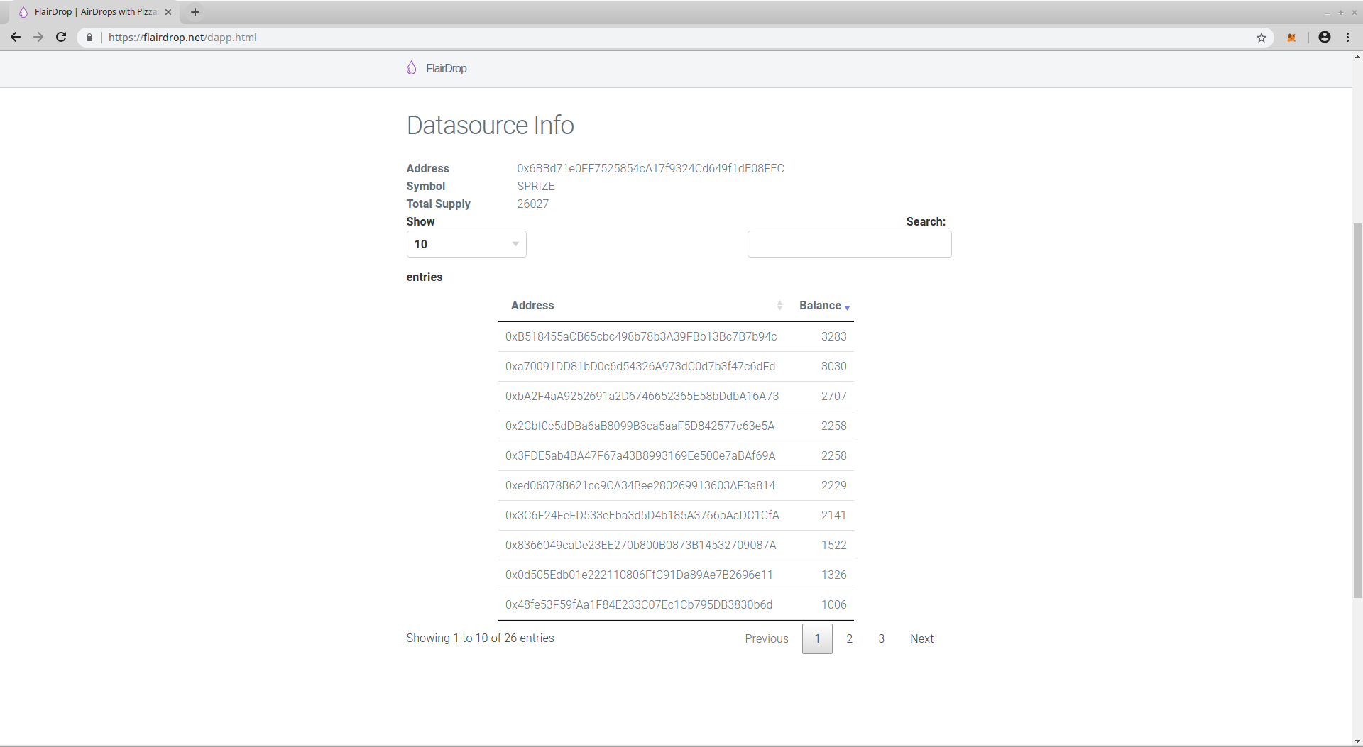 In order to prove the concept I had to perform an airdrop of my own. Since I am working with icosuccess on their sweepstakes for SuchApp tokens I decided to use contest participants as a test bed and send them each 1 FLAIRDROP.