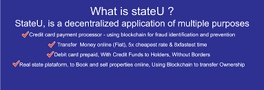 Stateu is a platform created that aims at credit payment processors which uses blockchain and decentralized application to identify and prevent the occurrence of any fraud activity if the need arises. It shouldn’t be new to us that blockchain and centralized application is taken over the world gradually so as to give humans the benefits of security from scammers and thefts online. With the right use of the blockchain, users documents are been saved on property sales, identification of buyers and legality of money, which can be kept for a very long time almost forever. The system is so transparent and trust worthy that one doesn’t have to worry about funds or other issues which one may think it will rise. It enables transfer easy, fast and simple without no geographical limitations instantly, this means that no matter where one is, no matter where you are or where you may want to send money to, this is the best platform in that it is instant and totally safe. With the basic features already underlined below, it’s been made to serve users by giving them maximum satisfaction. It’s a totally safe and sound system. It’s transparent, reliable and incorruptible. Identification of KYC and AML is 100% safe. One can transfer without borders and without limitations. With the help of her smart contract, it helps buyers match with seller exchange and also help in settling automated disputes if any. Did I also to forget to tell you that it’s free and the system is transparent. Well, if I did, then you heard it right.