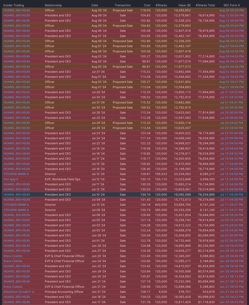 This is the largest loss in one day among all companies in the world in history. NVIDIA President Jensen Huang has been selling shares for the past few months.