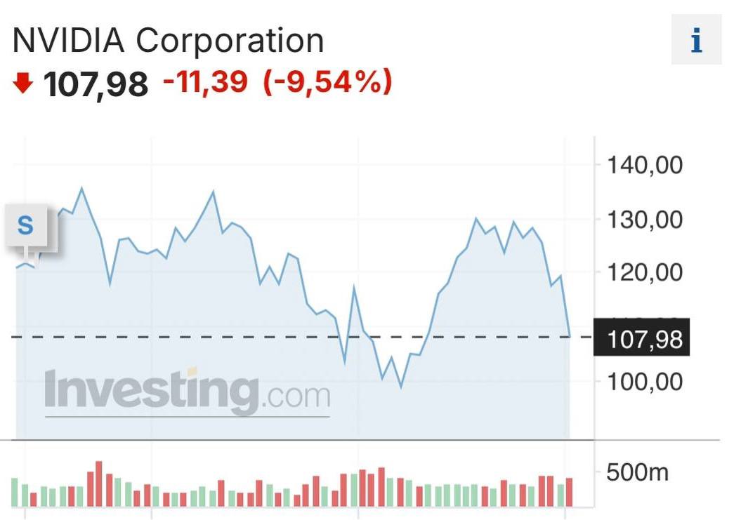 🔽🔽Another loss: this time NVIDIA shares collapsed — the company lost $280 billion in capitalization.