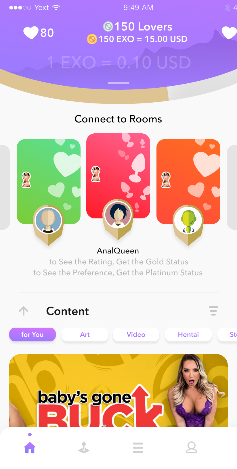 To make this amazing experience possible, we have developed the ExoLover mobile application. This is your portable assistant and navigator in the world of online sex on our platform. It is here on the main page of the application that you can look into the rooms already created by others and decide with whom you will share this fascinating and heart racing adventure.