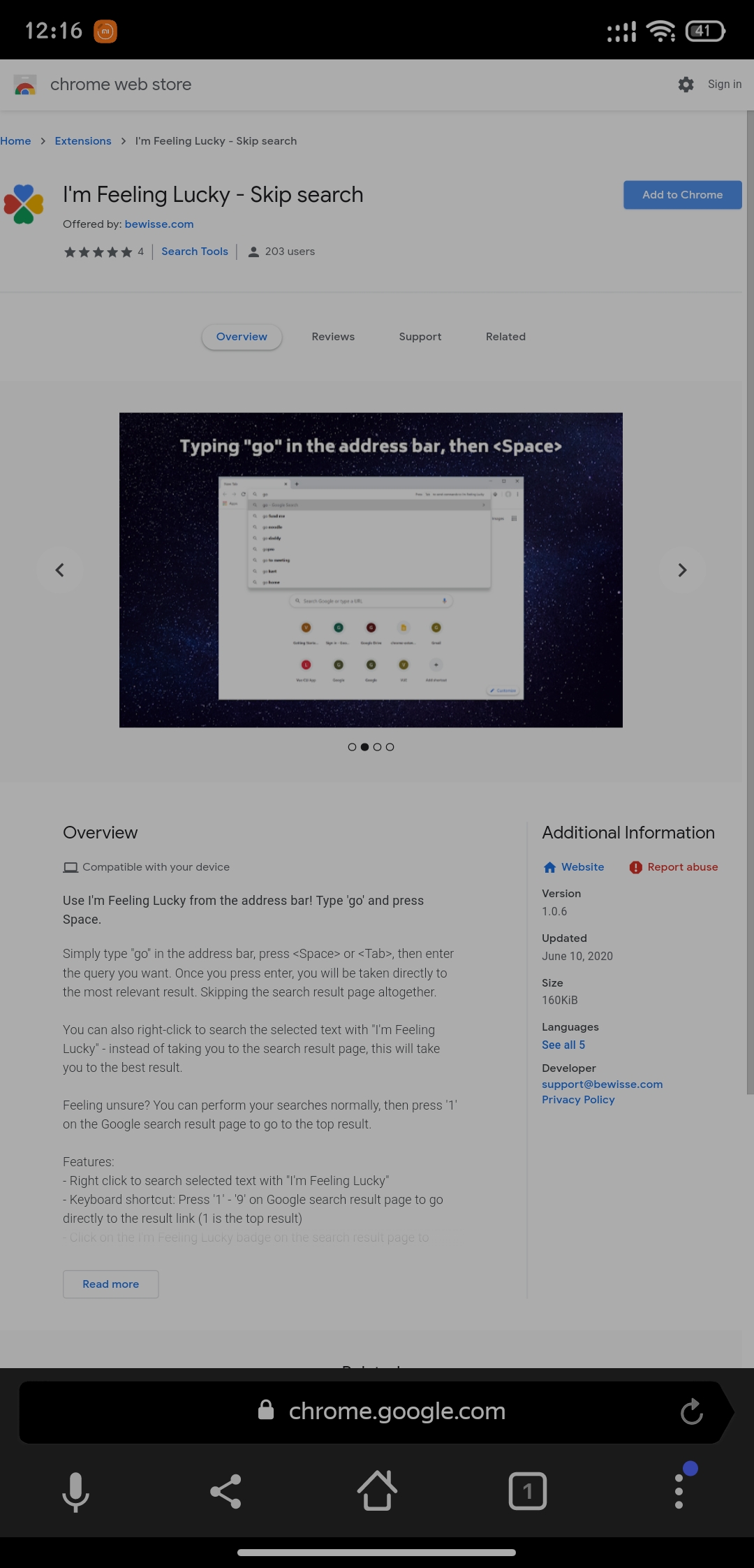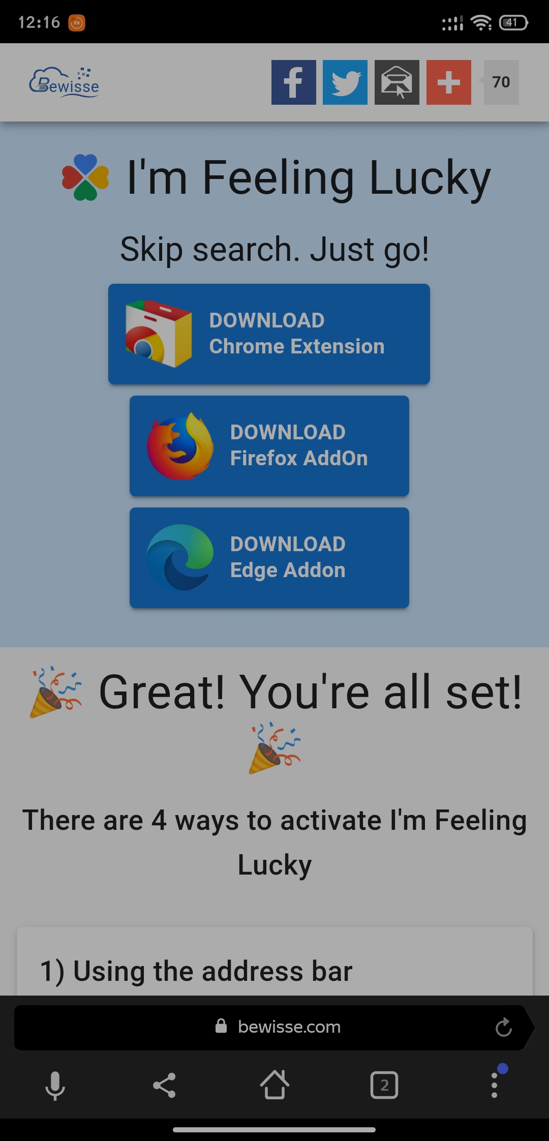 Today I am sharing a good project with you. It is a extension. It's available for 3 kinds of browser. They are Chrome, Firefox amd Edge. I have used this extension and believe me, it's really helpful. It will enhance your search experience. You can get quality result from Google search. So just try this extension. You can know more by visiting this: https://bewisse.com/im-feeling-lucky/