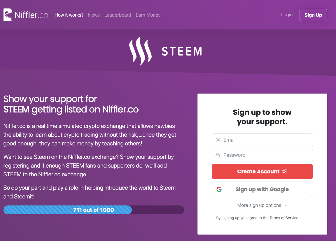 Please help get Steem on the Niffler Exchange. 289 more Steemians needed.