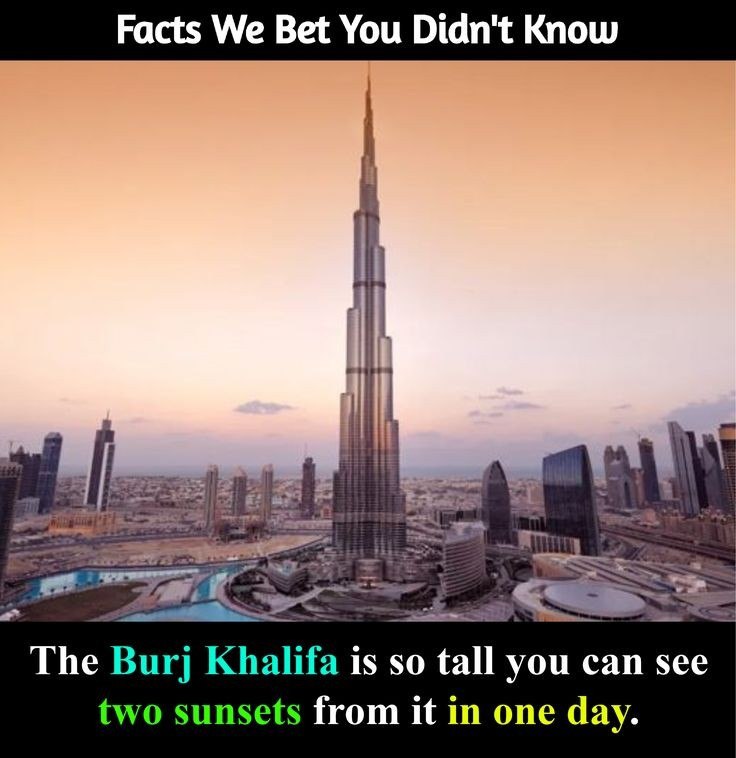 Facts We Bet You Didn't Know - 1jaydip06 (52)in #facts • last year The Burj Khalifa is SO tall you can see two sunsets from it in one day. #worldfacts #study #knowledge #students #school