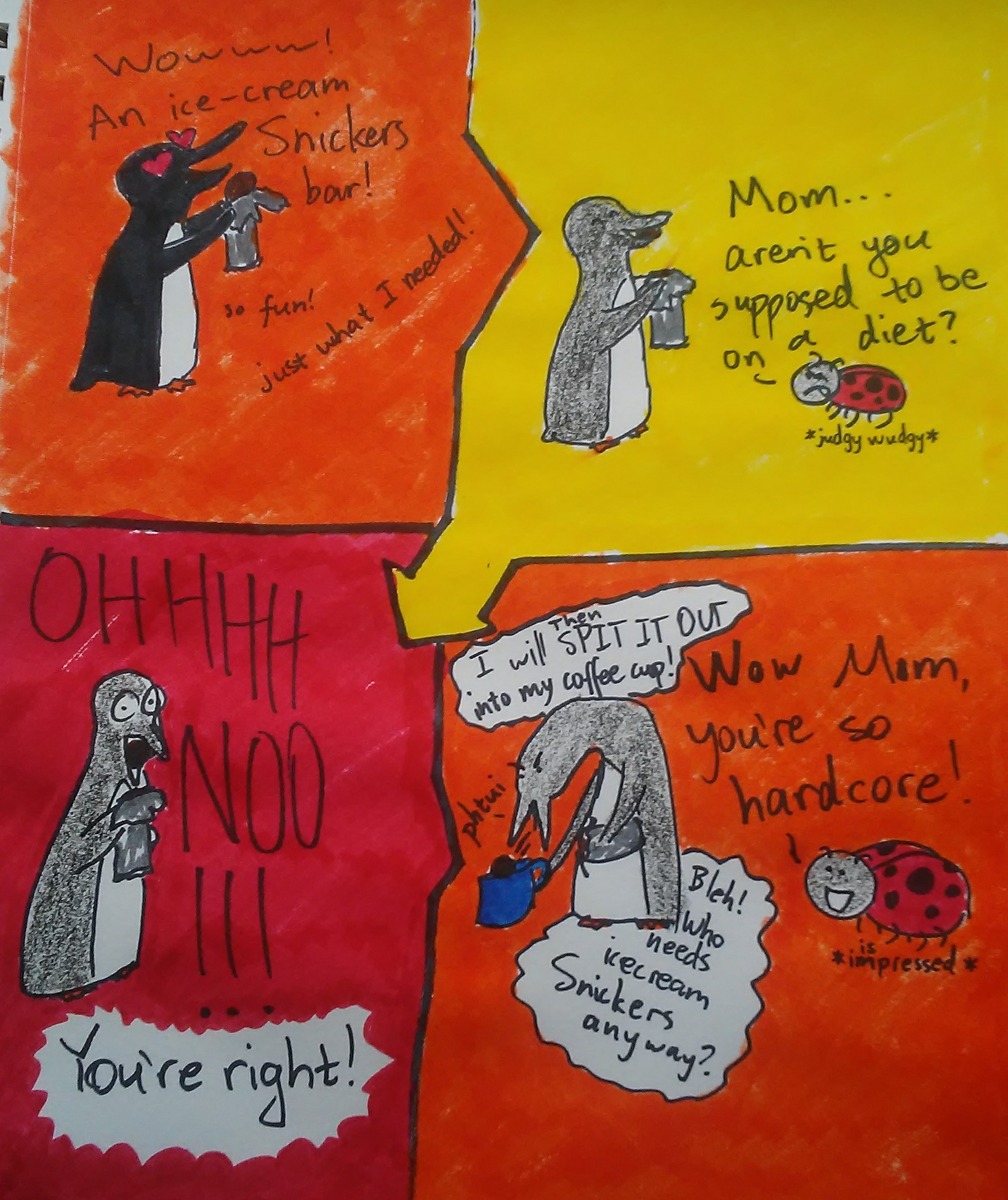 This really happened, except all my siblings were present. They are represented here by Litty the Ladybug, only because I didn't feel like drawing them all.