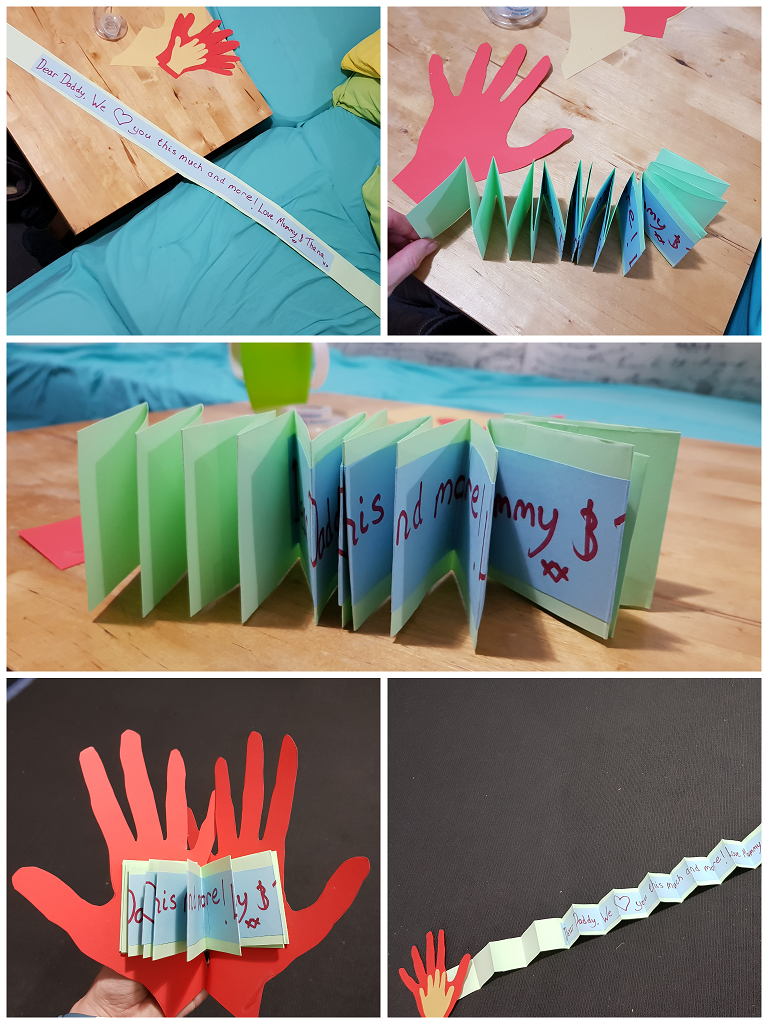 I woke up in the morning two lovely presents handmade thanks to my wife given that I'm not someone that really lives gifts she absolutely nailed it with a little cast of his feet and a card made from a cut out of his and her hands with the message written out on the armspan of both of them.